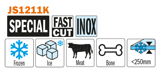 Et, kemik, Buz ürünler kesilmesi, parçalanmasında Korozyon önleyici paslanmaz çelik gövde, keskin, dayanıklı, hafif ve 250 mm kalınlığa kadar hızlı kesim yapabilen çaprazlı yan set dişleri sayesinde uzun ömürlü çalışma süresi ve dayanıklılık.